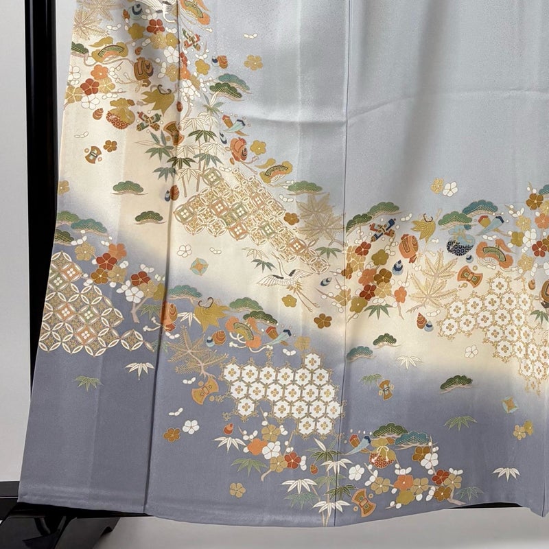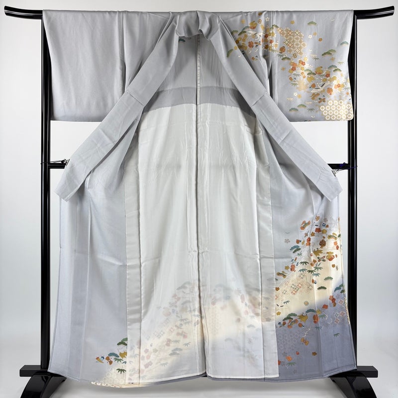 【訪問着】 灰色系 青灰色 秀品 C 約160cm~約169cm 裄丈66cm (M)size 袖丈48cm 7990-9980 二万以下
