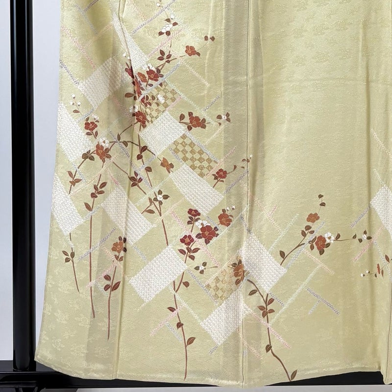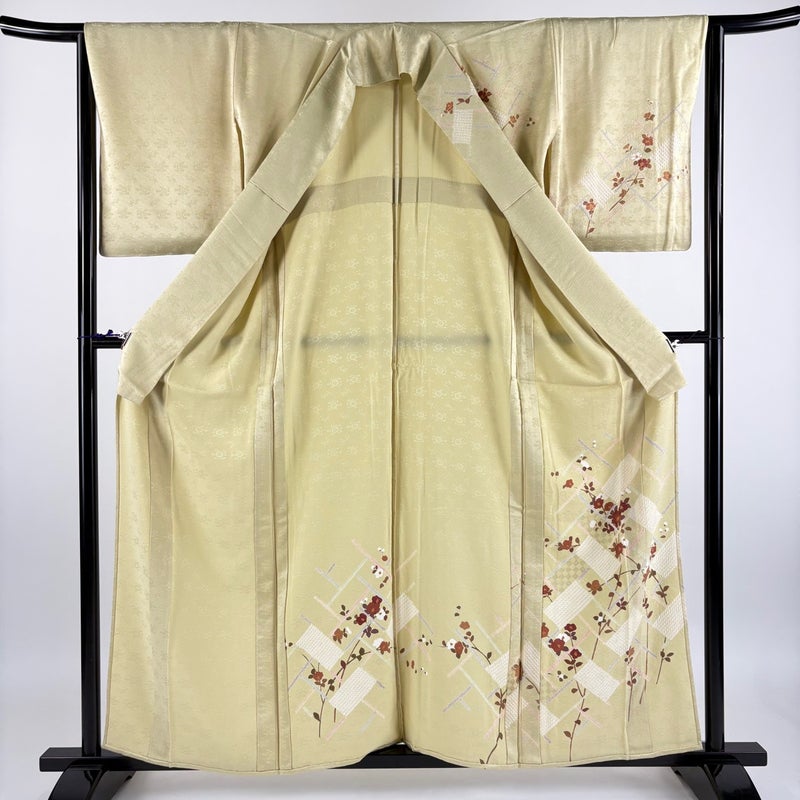 【訪問着】 黄色系 薄黄 秀品 A 約150cm~約159cm 裄丈63cm-64cm (M)size 袖丈49cm 9990-29990 美品 二万以下