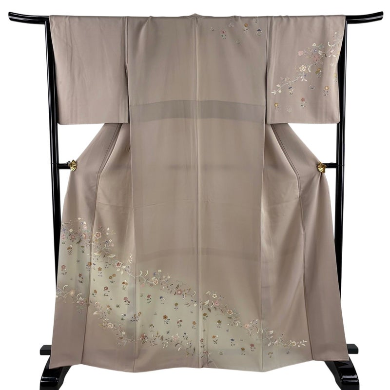 【着物ランク】秀品 【素材】正絹 【身丈】約165cm 【裄丈】約65.5cm 【袖丈】約48.5cm 【袖幅】約34.5cm 【前幅】約26cm 【後幅】約31.5cm 【サイズ】M 【着物仕立て】袷 【着用時期】10~5月 【状態ランク】ランクB 【着物着用シーン】披露宴、パーティー、お見合い、式典、茶会