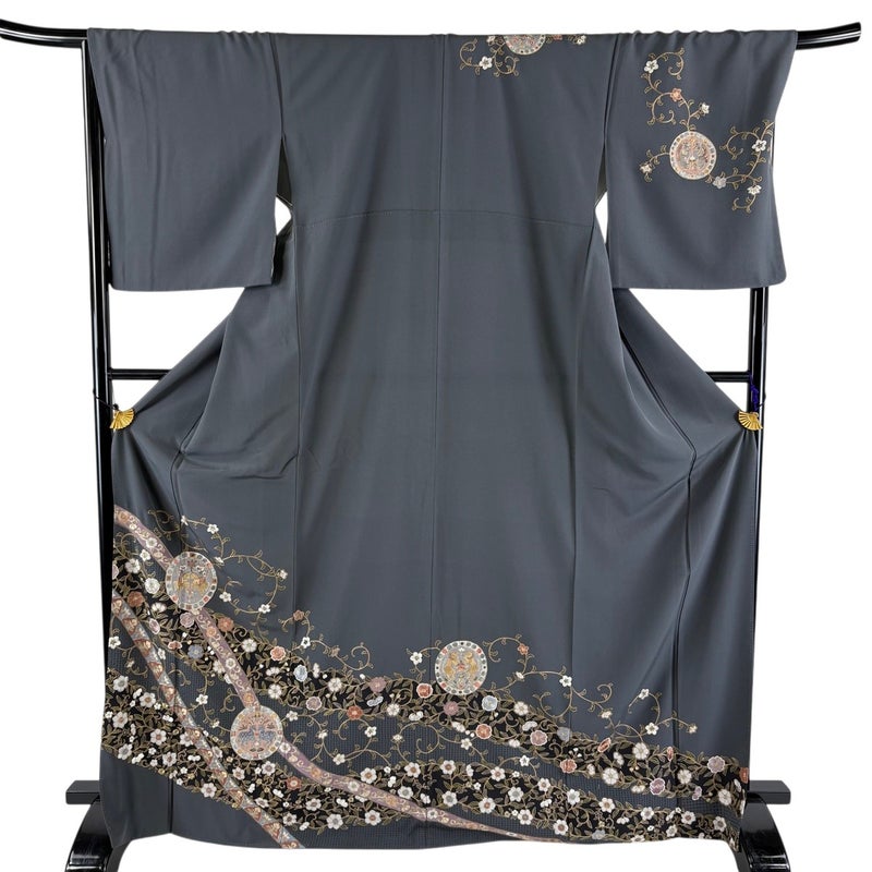 【訪問着】 灰色系 灰色 秀品 B 約170cm~約179cm 裄丈69cm以上 (L)size 袖丈50cm-60cm 7990-9980 二万以下