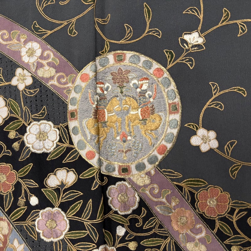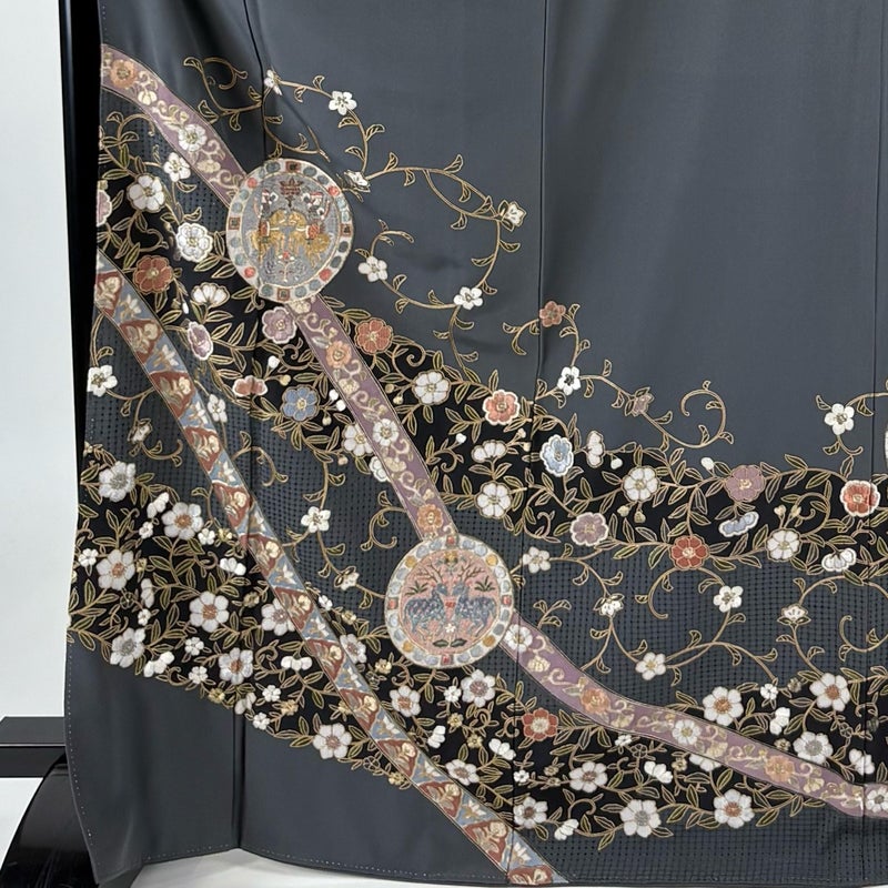 【着物ランク】秀品 【素材】正絹 【身丈】約171cm 【裄丈】約70cm 【袖丈】約51cm 【袖幅】約35.5cm 【前幅】約24.5cm 【後幅】約30cm 【サイズ】L 【着物仕立て】袷 【着用時期】10~5月 【状態ランク】ランクB 【着物着用シーン】披露宴、パーティー、お見合い、式典、茶会