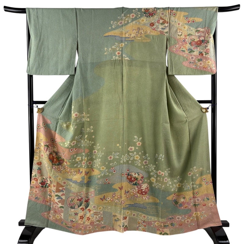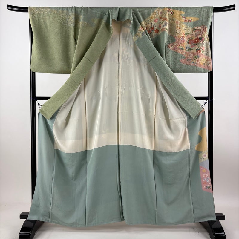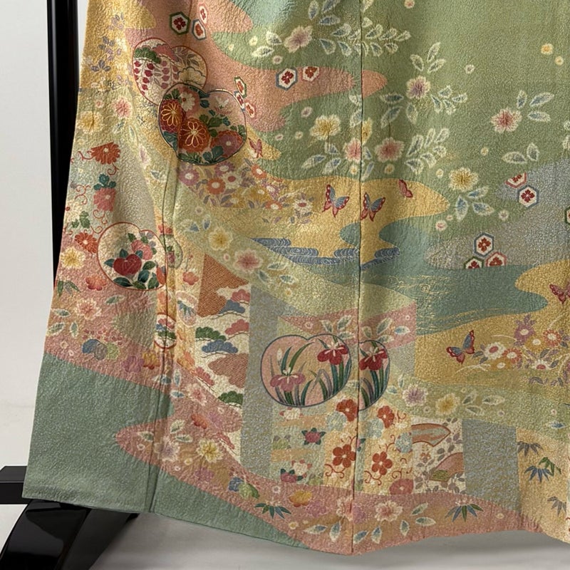 【訪問着】 緑系 薄緑 秀品 B 約160cm~約169cm 裄丈66cm (M)size 袖丈49cm 7990-9980 二万以下