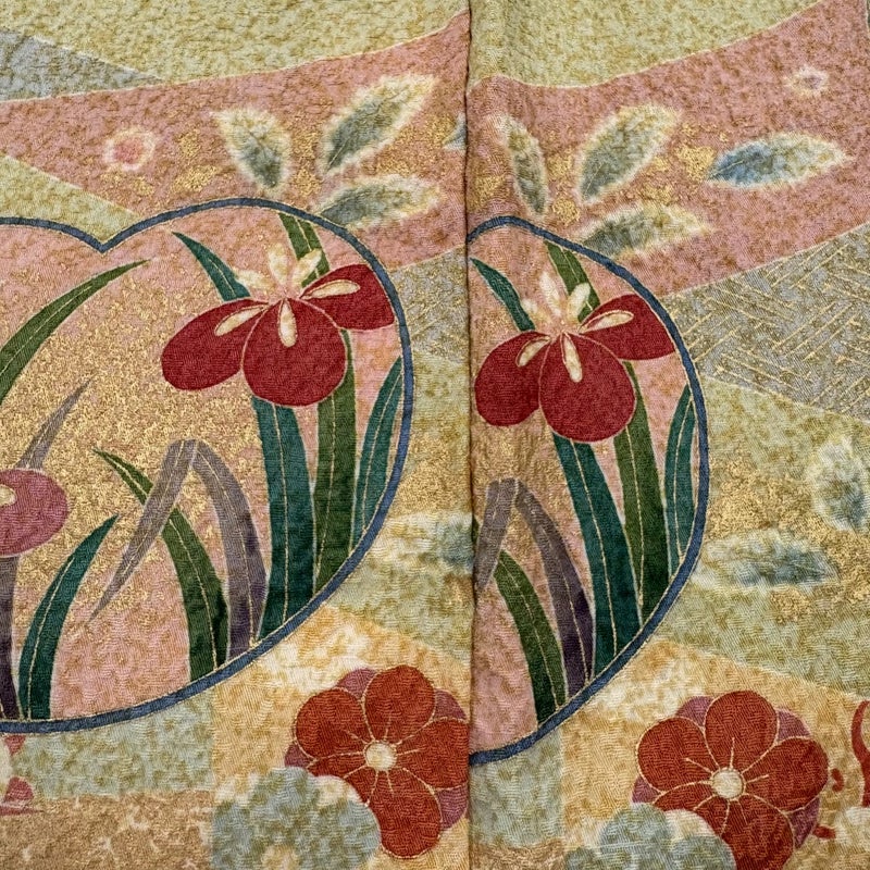 【着物ランク】秀品 【素材】正絹 【身丈】約163cm 【裄丈】約66cm 【袖丈】約49cm 【袖幅】約34cm 【前幅】約28cm 【後幅】約30.5cm 【サイズ】M 【着物仕立て】袷 【着用時期】10~5月 【状態ランク】ランクB 【着物着用シーン】披露宴、パーティー、お見合い、式典、茶会