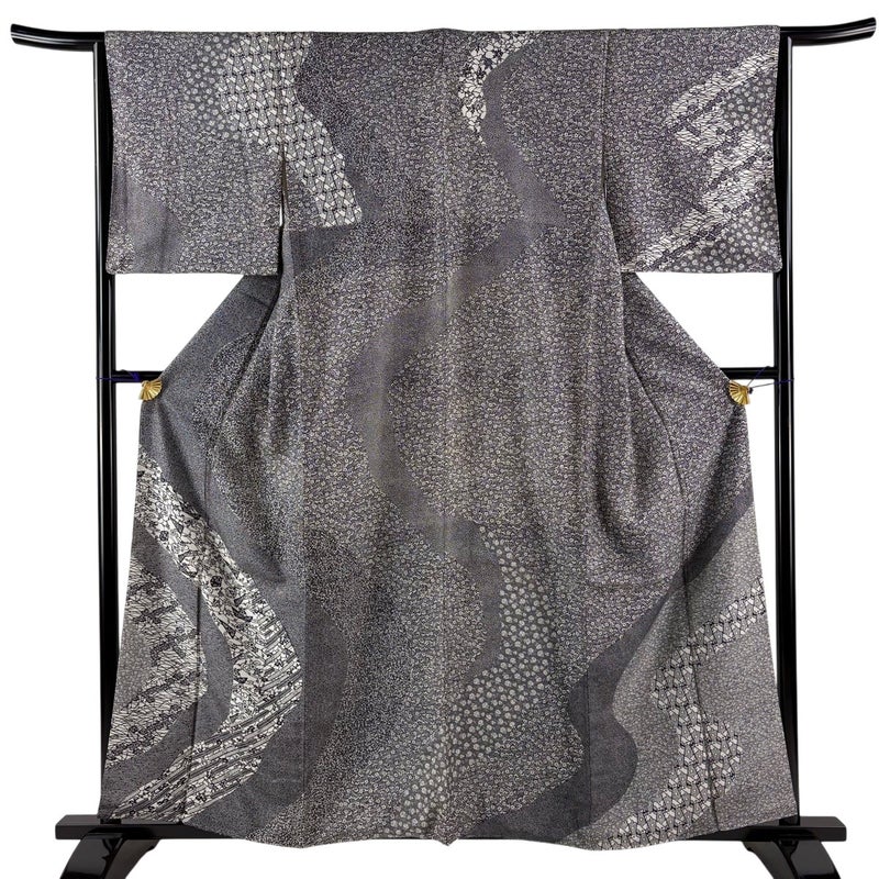 【訪問着】 灰色系 黒灰 秀品 B 約150cm~約159cm 裄丈63cm-64cm (S)size 袖丈49cm 7990-9980 二万以下