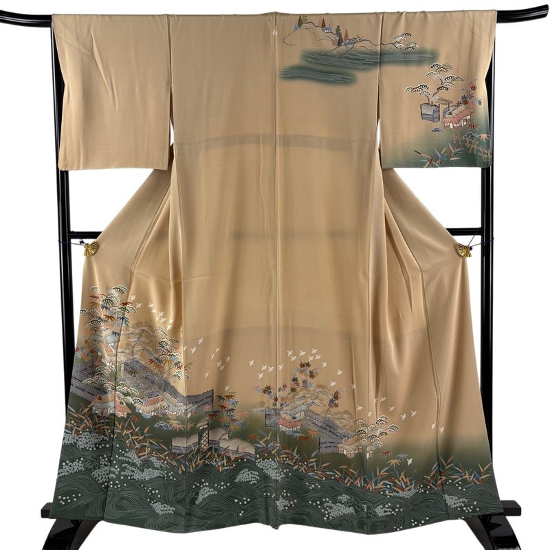 【訪問着】 白系 ベージュ 秀品 C 約160cm~約169cm 裄丈67cm-68cm (L)size 袖丈49cm 7990-9980 二万以下