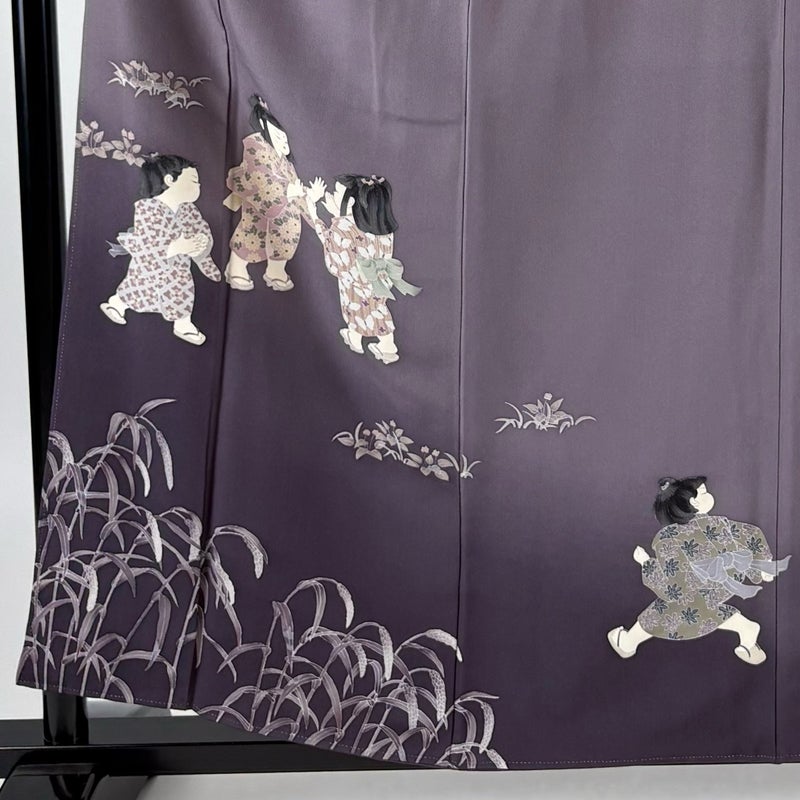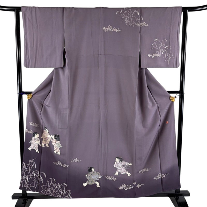 【訪問着】 灰色系 灰紫 秀品 B 約150cm~約159cm 裄丈62cm以下 (S)size 袖丈48cm 7990-9980 二万以下