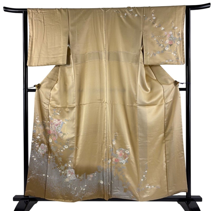 【着物ランク】秀品 【素材】正絹 【身丈】約159cm 【裄丈】約63.5cm 【袖丈】約48.5cm 【袖幅】約32.5cm 【前幅】約24cm 【後幅】約29cm 【サイズ】S 【着物仕立て】袷 【着用時期】10~5月 【状態ランク】ランクB 【着物着用シーン】披露宴、パーティー、お見合い、式典、茶会