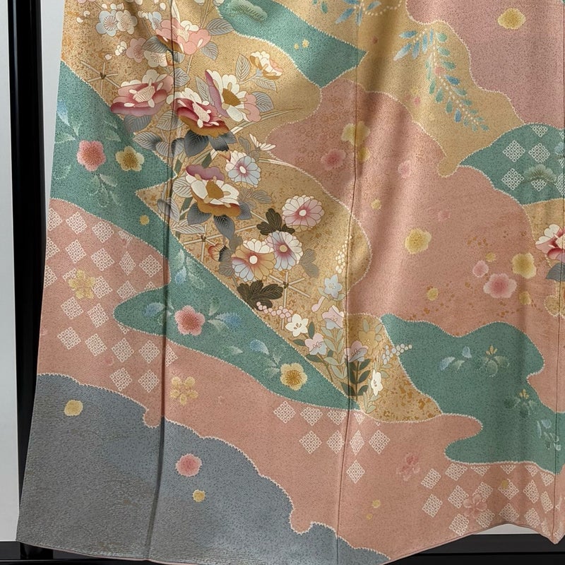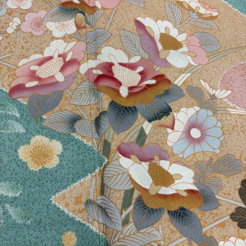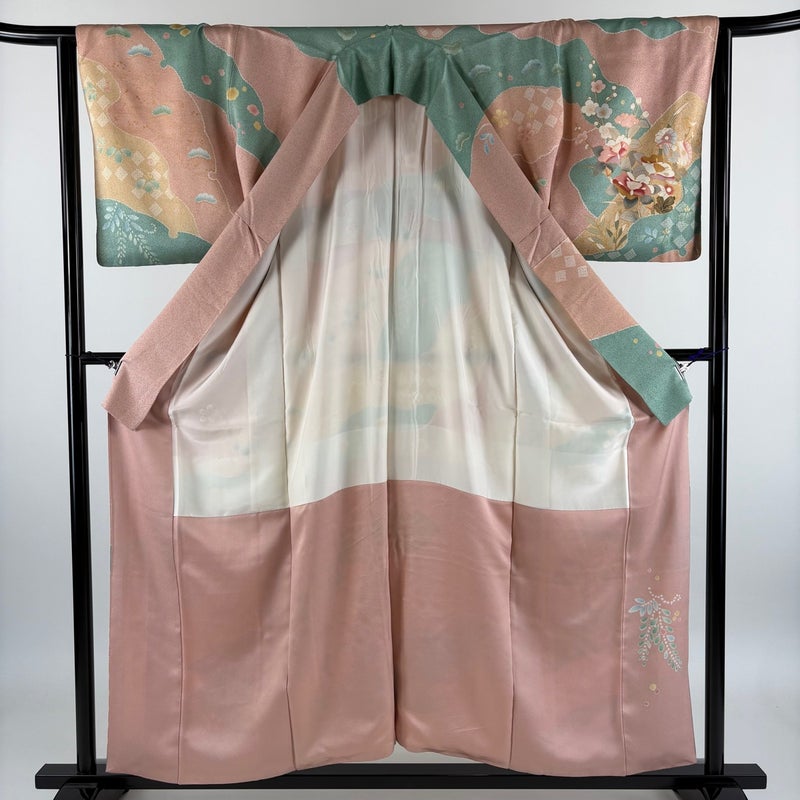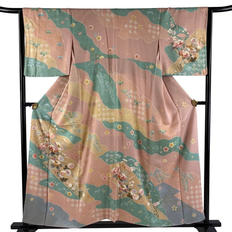 【着物ランク】秀品 【素材】正絹 【身丈】約156.5cm 【裄丈】約64.5cm 【袖丈】約48cm 【袖幅】約33.5cm 【前幅】約24cm 【後幅】約30cm 【サイズ】M 【着物仕立て】袷 【着用時期】10~5月 【状態ランク】ランクC 【着物着用シーン】披露宴、パーティー、お見合い、式典、茶会