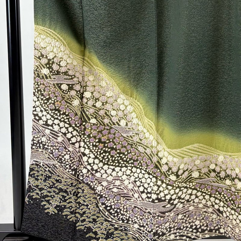 【訪問着】 緑系 深緑 秀品 B 約150cm~約159cm 裄丈67cm-68cm (L)size 袖丈49cm 7990-9980 二万以下