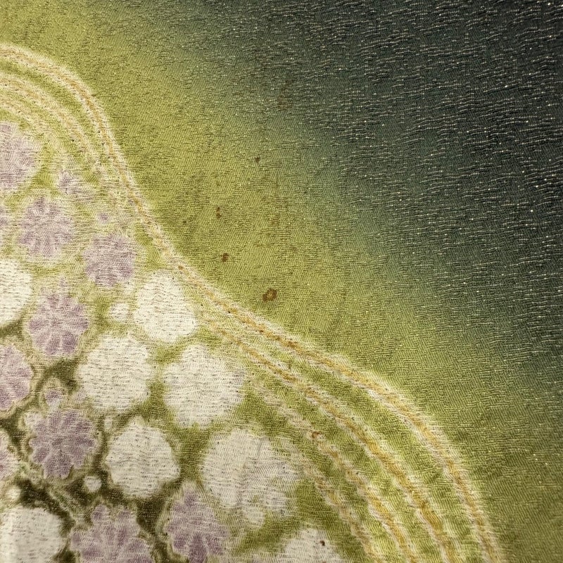 気品たっぷりにお召し頂ける素敵な訪問着です。 上品な華やぎを求められるパーティーや、品格が求められるお席などにお使い頂けます。 ※身丈・裄丈の縫込みの長さは測っておりません。 上前所々にシミ、衿周りや両袖口中に汚れ、左前袖付けにほつれがございます。 胴裏所々にシミ、胴裏に糸つれ、胴裏背中心に縫い目のゆるみがございます。 リユース品としては良い状態で、まだまだご活用頂けると思われます。 ※なお、厳しく商品の状態確認を行っておりますが、記載の汚れ以外にも見落とし箇所がある可能性がある旨ご了承いただけますと幸いです。 沢山の商品の中からご覧いただき誠にありがとうございます。