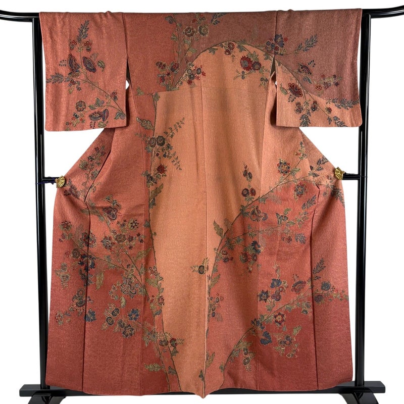 【訪問着】 赤系 赤茶 秀品 C 約150cm~約159cm 裄丈63cm-64cm (S)size 袖丈49cm 7990-9980 二万以下