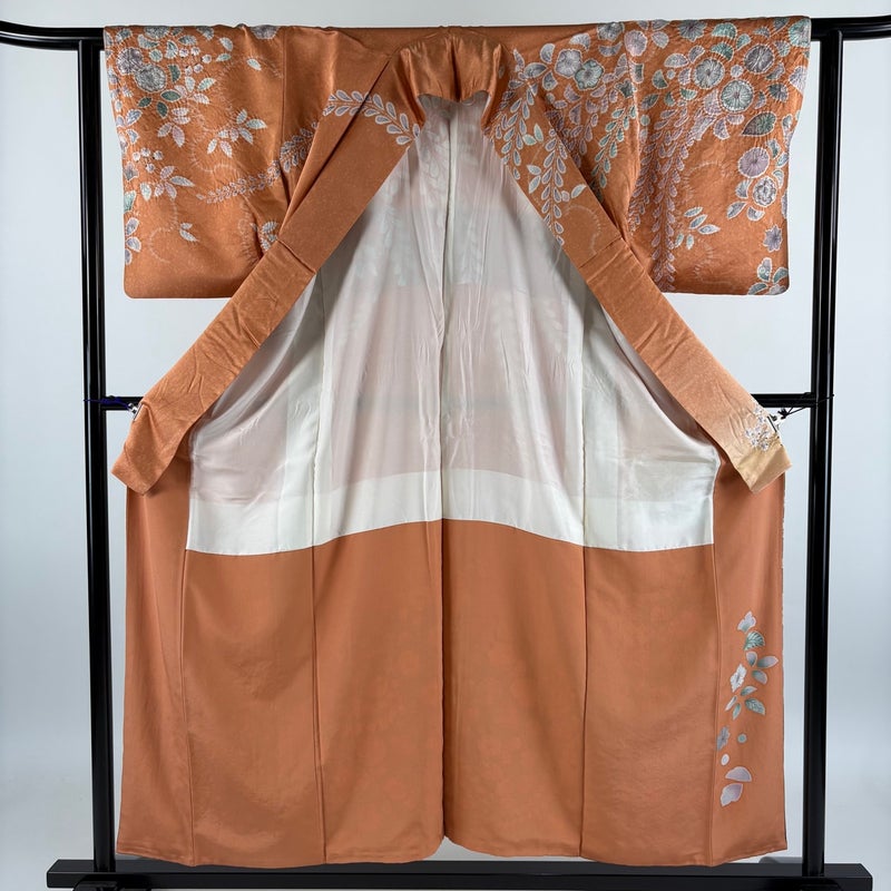 【着物ランク】秀品 【素材】正絹 【身丈】約155cm 【裄丈】約62cm 【袖丈】約48.5cm 【袖幅】約32.5cm 【前幅】約24cm 【後幅】約30cm 【サイズ】S 【着物仕立て】袷 【着用時期】10~5月 【状態ランク】ランクA 【着物着用シーン】披露宴、パーティー、お見合い、式典、茶会
