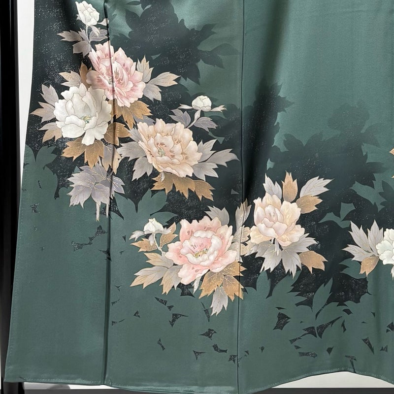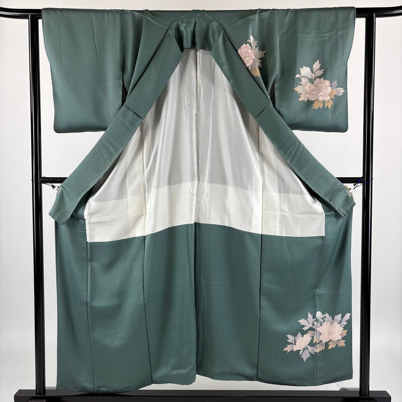 【訪問着】 灰色系 灰緑 秀品 B 約150cm~約159cm 裄丈62cm以下 (S)size 袖丈49cm 7990-9980 二万以下