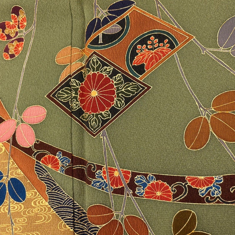 【訪問着】 緑系 深緑 秀品 B 約160cm~約169cm 裄丈65cm (M)size 袖丈50cm-60cm 7990-9980 二万以下