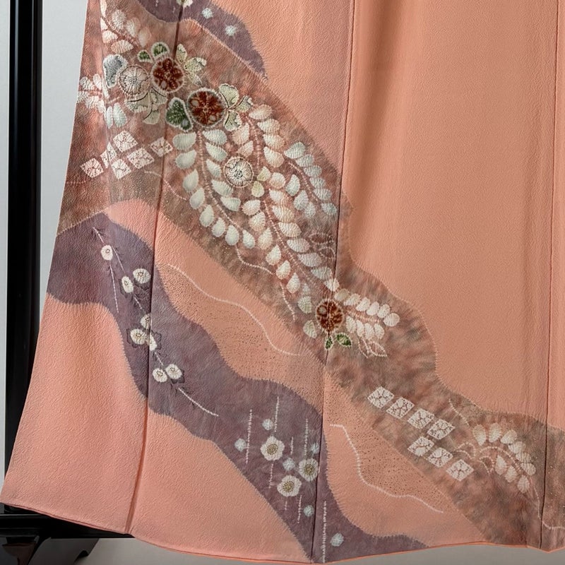 【着物ランク】秀品 【素材】正絹 【身丈】約160cm 【裄丈】約66cm 【袖丈】約48cm 【袖幅】約34.5cm 【前幅】約23.5cm 【後幅】約29.5cm 【サイズ】M 【着物仕立て】袷 【着用時期】10~5月 【状態ランク】ランクB 【着物着用シーン】披露宴、パーティー、お見合い、式典、茶会