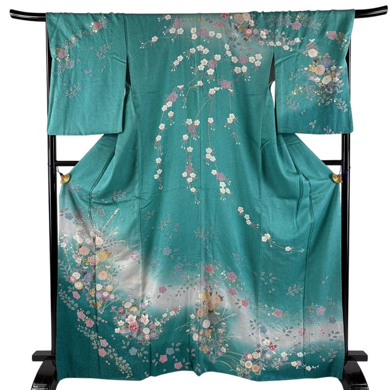 【訪問着】 緑系 緑 秀品 B 約160cm~約169cm 裄丈69cm以上 (L)size 袖丈50cm-60cm 7990-9980 二万以下