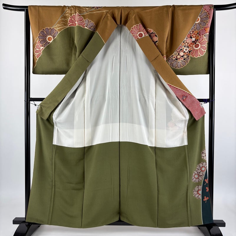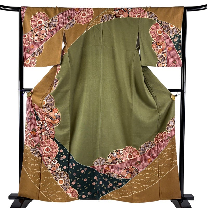 【訪問着】 緑系 鶯色 秀品 B 約160cm~約169cm 裄丈66cm (M)size 袖丈49cm 7990-9980 二万以下
