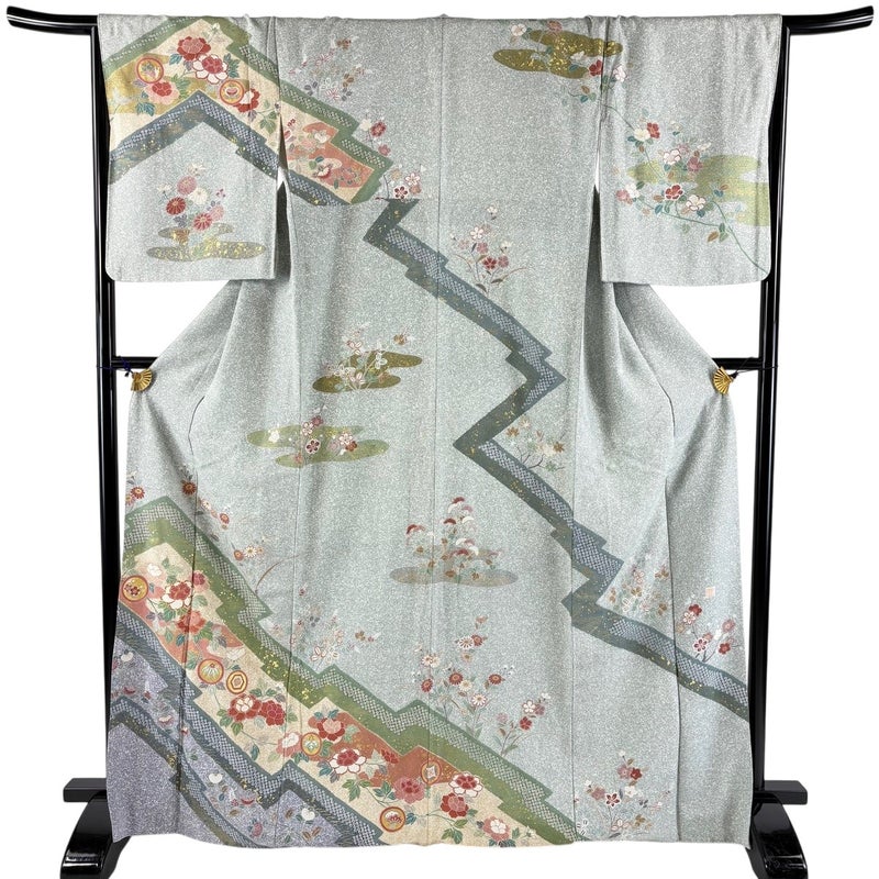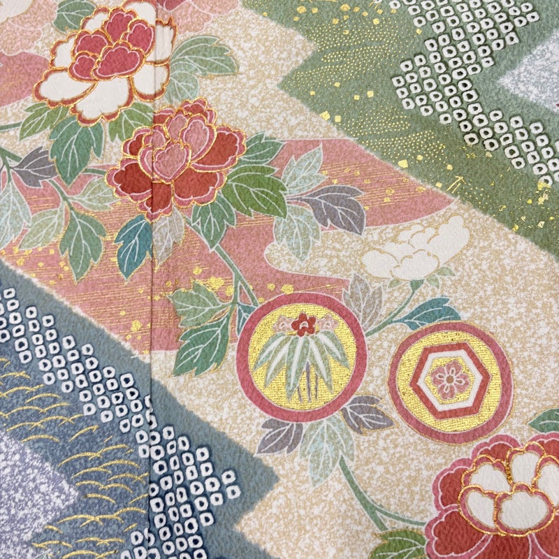 【着物ランク】秀品 【素材】正絹 【身丈】約168.5cm 【裄丈】約67cm 【袖丈】約51.5cm 【袖幅】約34cm 【前幅】約23cm 【後幅】約30cm 【サイズ】M 【着物仕立て】袷 【着用時期】10~5月 【状態ランク】ランクB 【着物着用シーン】披露宴、パーティー、お見合い、式典、茶会