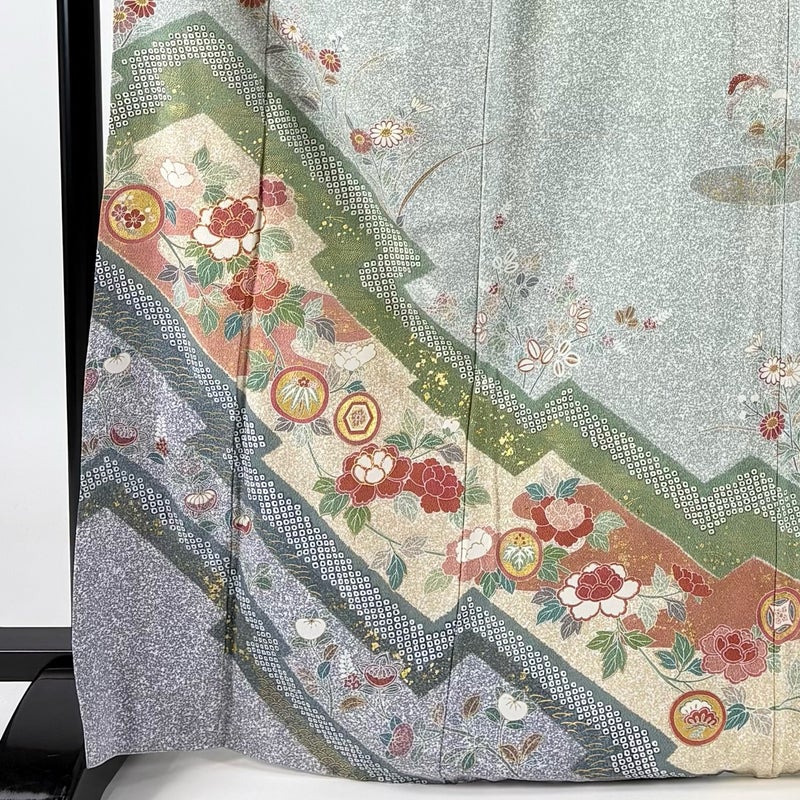 【訪問着】 緑系 薄緑 秀品 B 約160cm~約169cm 裄丈67cm-68cm (M)size 袖丈50cm-60cm 7990-9980 二万以下