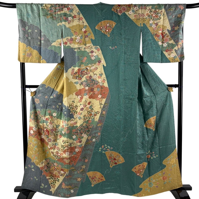 【訪問着】 灰色系 灰緑 名品 B 約160cm~約169cm 裄丈69cm以上 (L)size 袖丈48cm 9990-29990 二万以下
