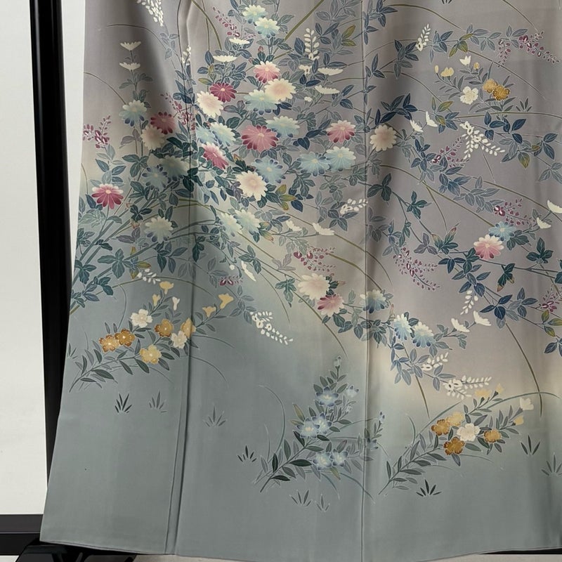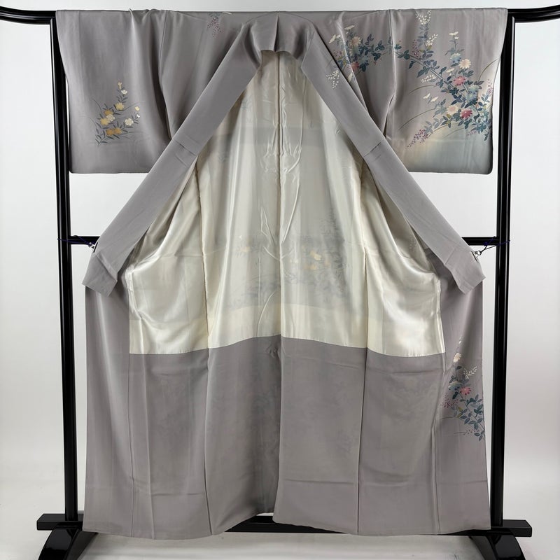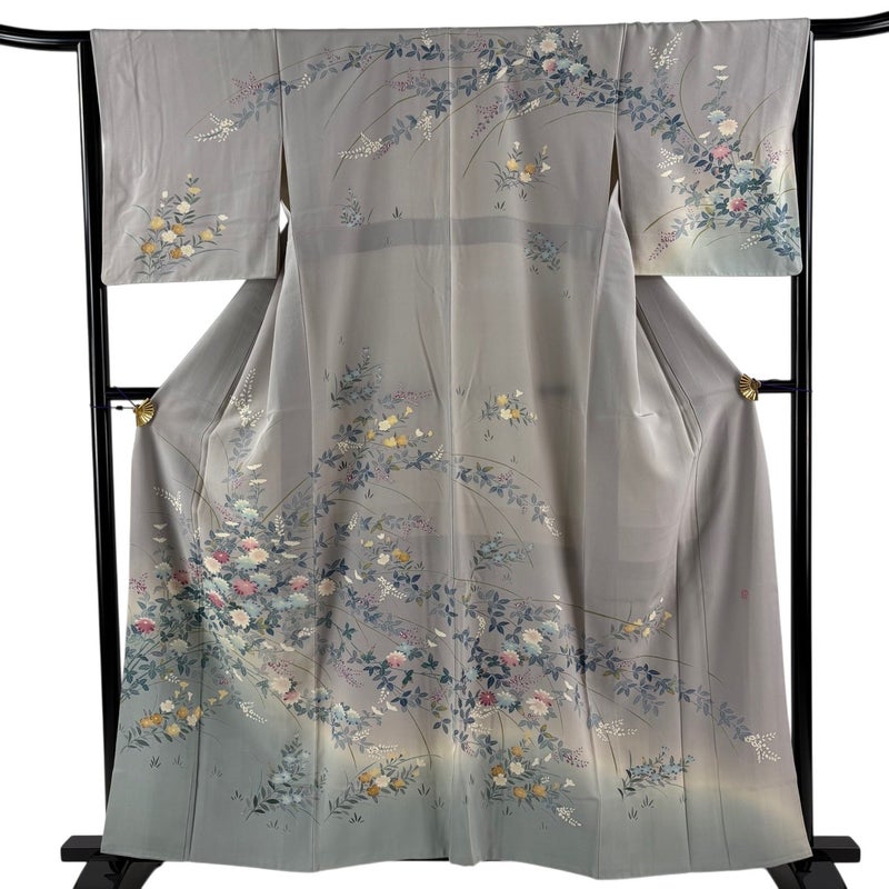 【着物ランク】名品 【素材】正絹 【身丈】約160cm 【裄丈】約65cm 【袖丈】約48cm 【袖幅】約34cm 【前幅】約25.5cm 【後幅】約31cm 【サイズ】M 【着物仕立て】袷 【着用時期】10~5月 【状態ランク】ランクB 【着物着用シーン】披露宴、パーティー、お見合い、式典、茶会