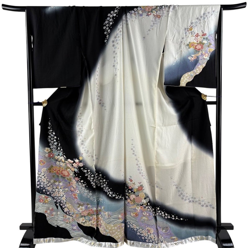【訪問着】 黒系 黒 名品 B 約170cm~約179cm 裄丈69cm以上 袖丈50cm-60cm 9990-29990 二万以下