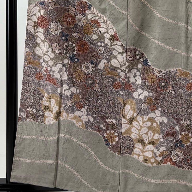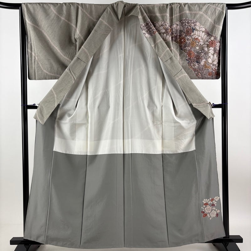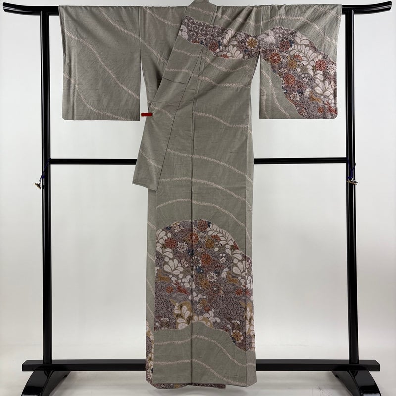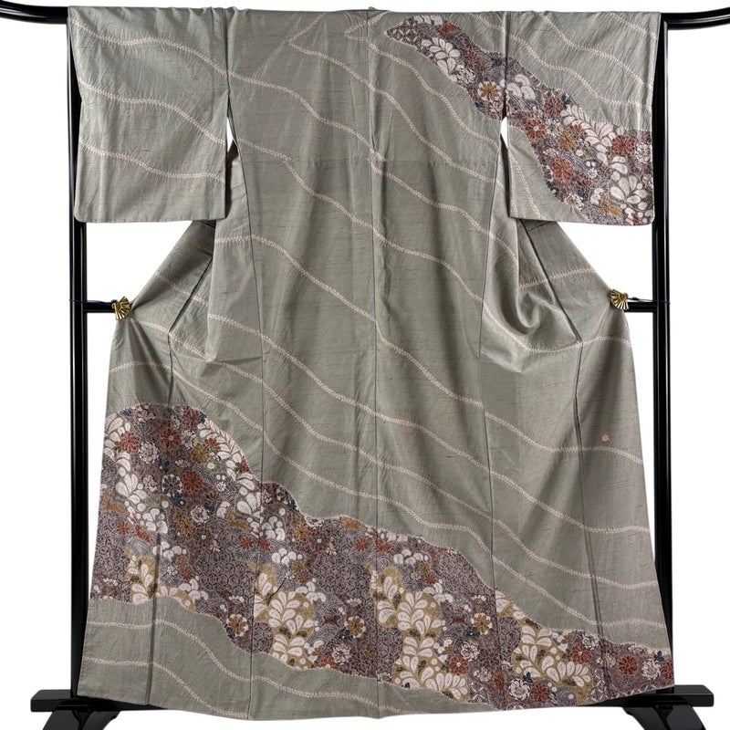 【訪問着】 灰色系 灰緑 逸品 A 約160cm~約169cm 裄丈66cm (M)size 袖丈50cm-60cm 30000- 美品 五万以下