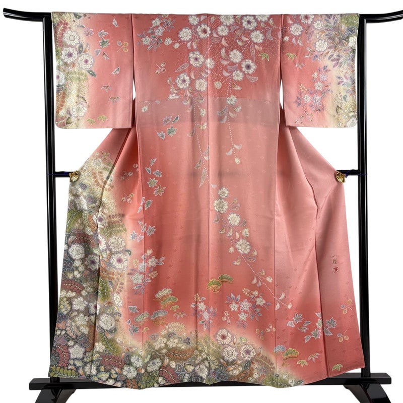 【訪問着】 赤系 ピンク 逸品 A 約150cm~約159cm 裄丈63cm-64cm (S)size 袖丈49cm 30000- 美品 五万以下