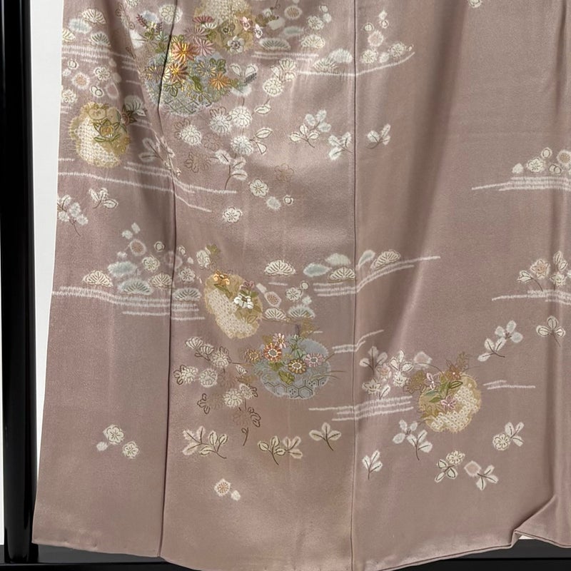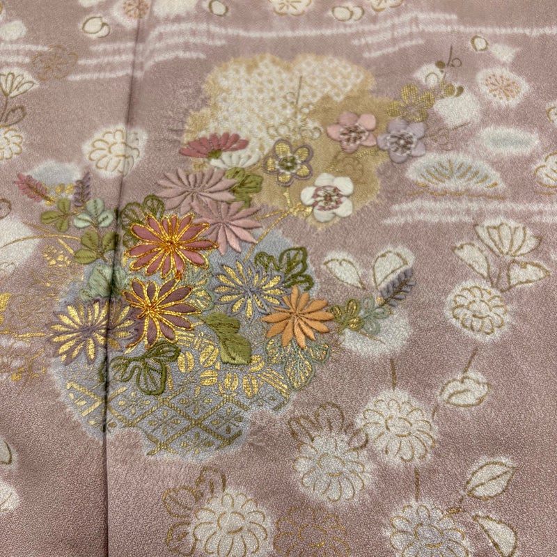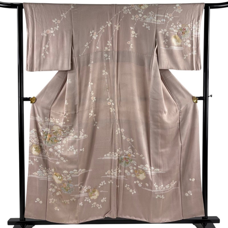 【着物ランク】秀品 【素材】正絹 【身丈】約156cm 【裄丈】約62.5cm 【袖丈】約49cm 【袖幅】約32cm 【前幅】約24cm 【後幅】約29.5cm 【サイズ】S 【着物仕立て】袷 【着用時期】10~5月 【状態ランク】ランクB 【着物着用シーン】披露宴、パーティー、お見合い、式典、茶会