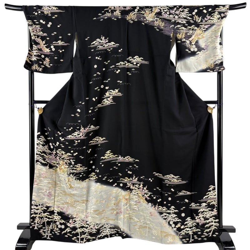 【訪問着】 黒系 黒 秀品 B 約160cm~約169cm 裄丈69cm以上 (L)size 袖丈48cm 7990-9980 二万以下