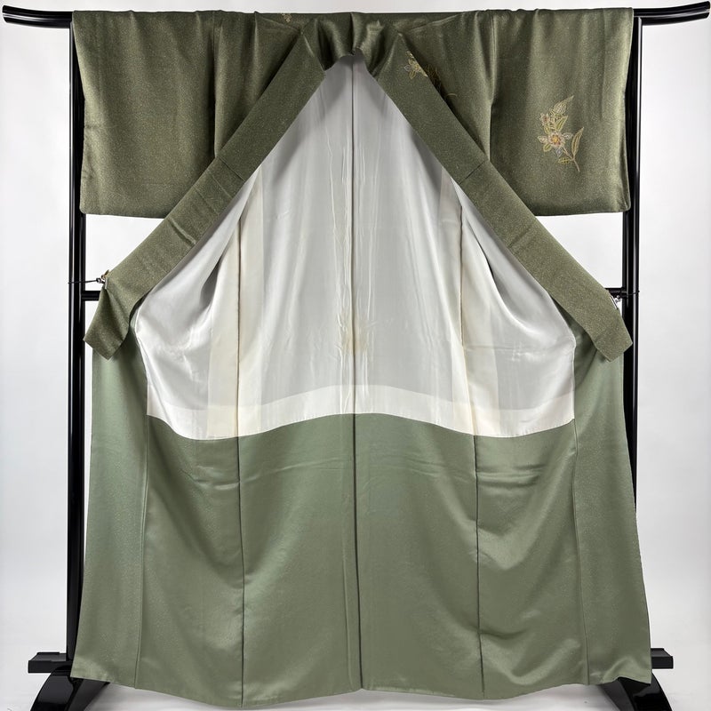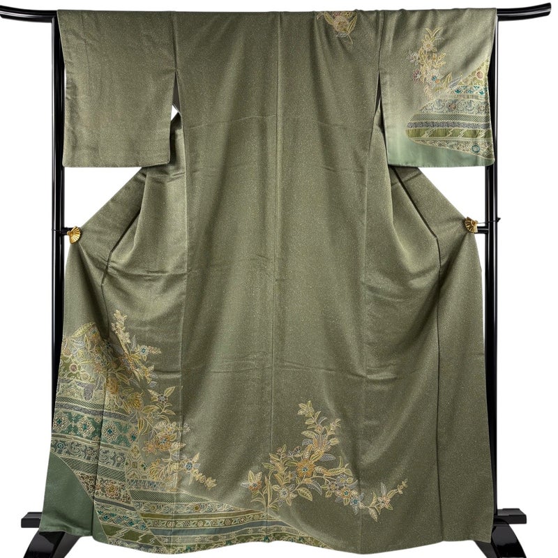 【訪問着】 灰色系 灰緑 名品 C 約160cm~約169cm 裄丈67cm-68cm (M)size 袖丈49cm 9990-29990 二万以下