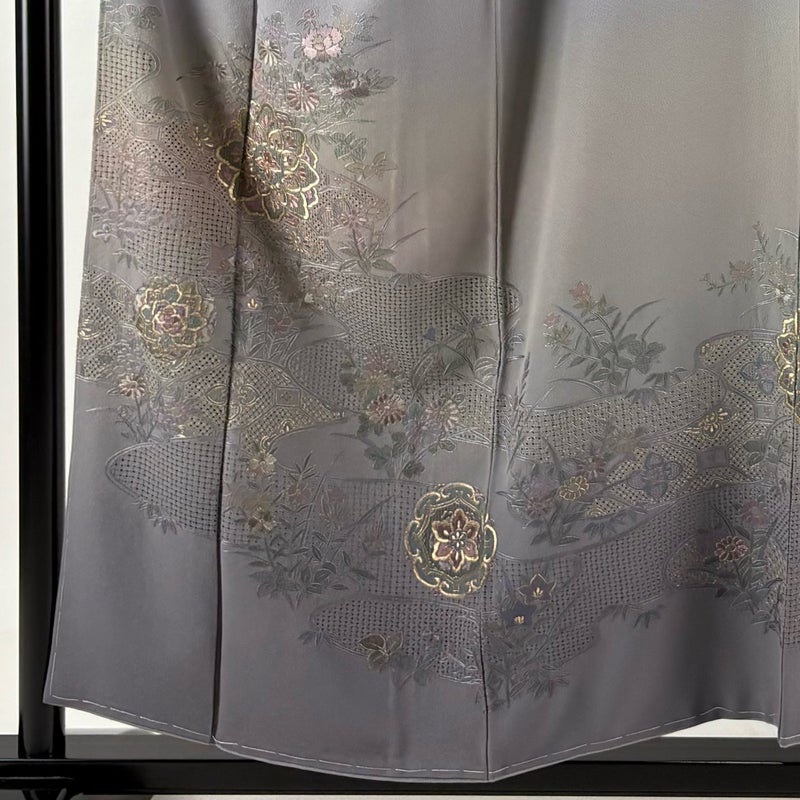 【訪問着】 灰色系 灰紫 名品 B 約150cm~約159cm 裄丈63cm-64cm (S)size 袖丈46cm以下 9990-29990 二万以下