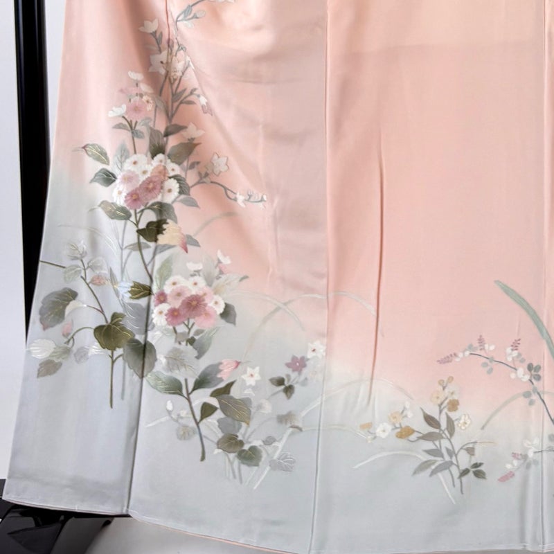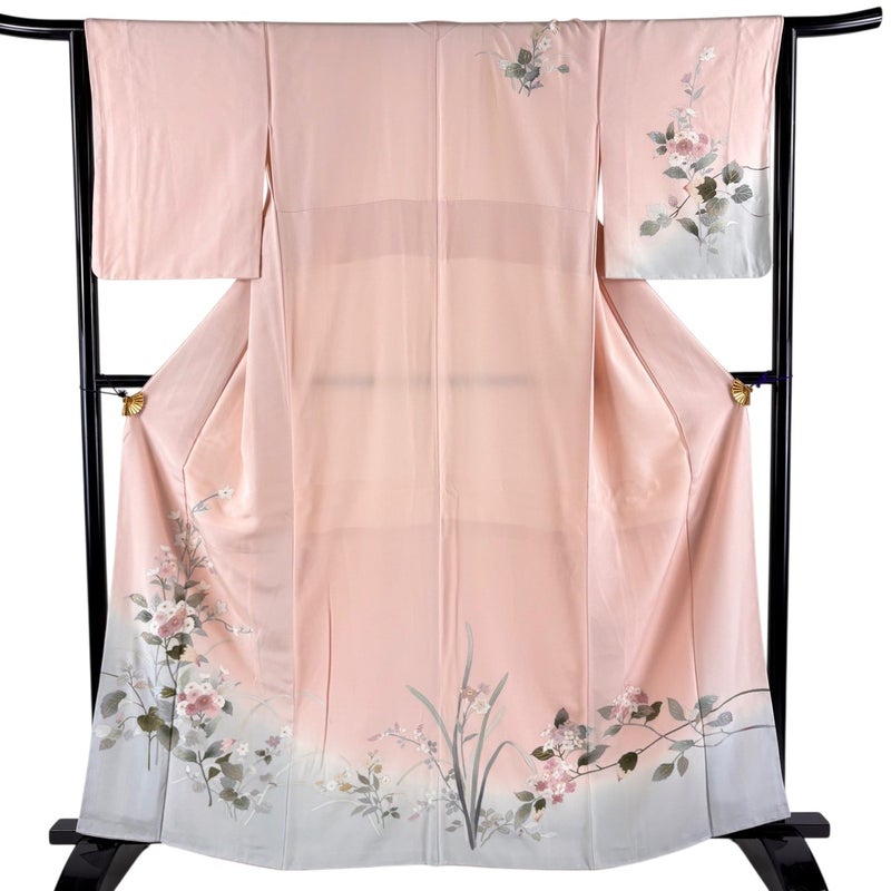 【着物ランク】名品 【素材】正絹 【身丈】約163cm 【裄丈】約64cm 【袖丈】約49cm 【袖幅】約33cm 【前幅】約24.5cm 【後幅】約30.5cm 【サイズ】M 【着物仕立て】袷 【着用時期】10~5月 【状態ランク】ランクA 【着物着用シーン】披露宴、パーティー、お見合い、式典、茶会