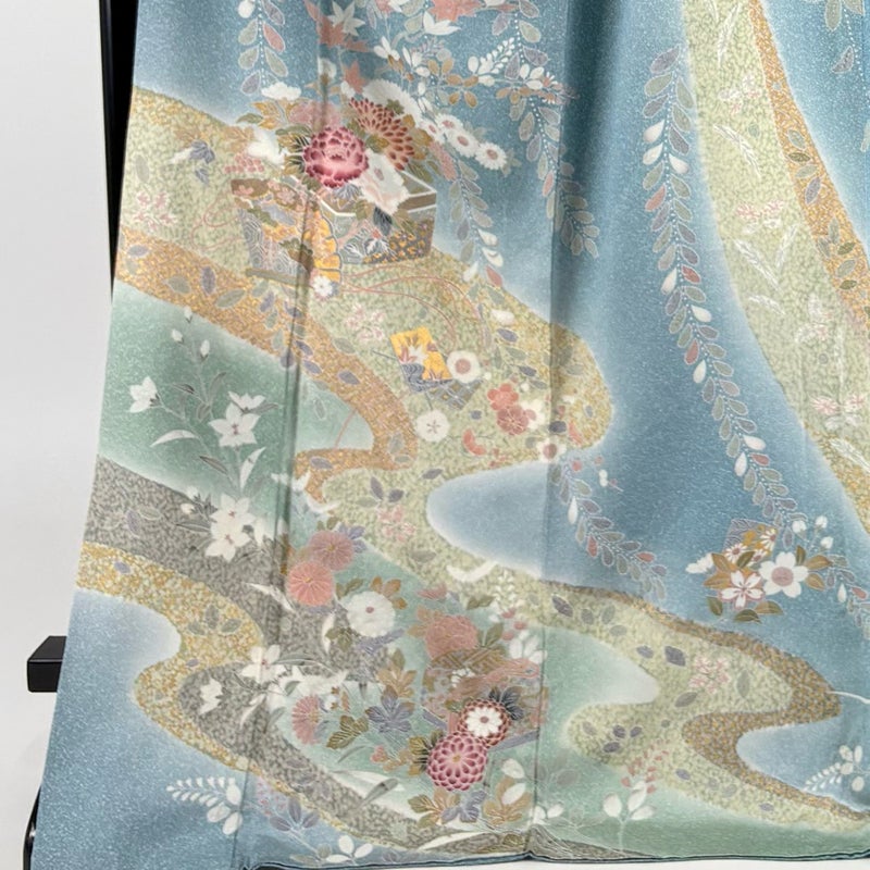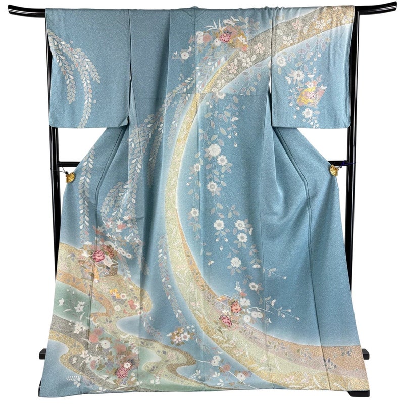【訪問着】 青系 水色 名品 B 約170cm~約179cm 裄丈69cm以上 (L)size 袖丈50cm-60cm 9990-29990 二万以下