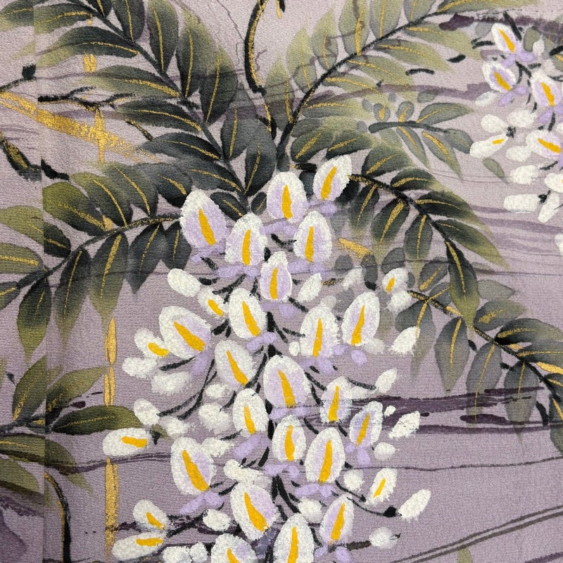 【着物ランク】名品 【素材】正絹 【身丈】約151.5cm 【裄丈】約64cm 【袖丈】約48cm 【袖幅】約33cm 【前幅】約24cm 【後幅】約30cm 【サイズ】M 【着物仕立て】袷 【着用時期】10~5月 【状態ランク】ランクB 【着物着用シーン】披露宴、パーティー、お見合い、式典、茶会