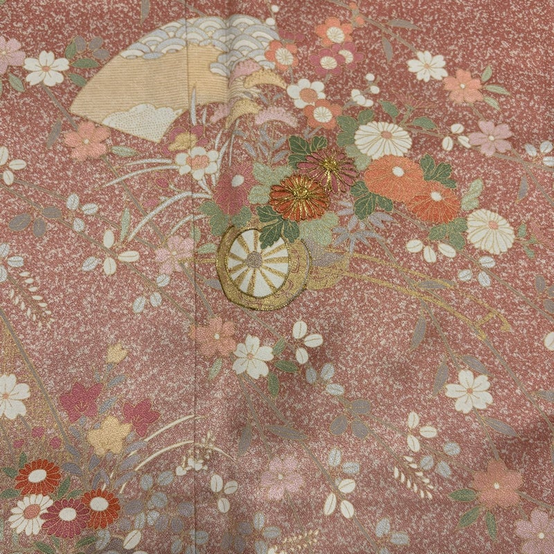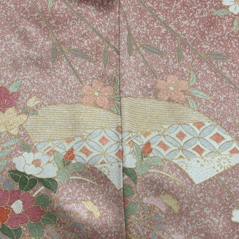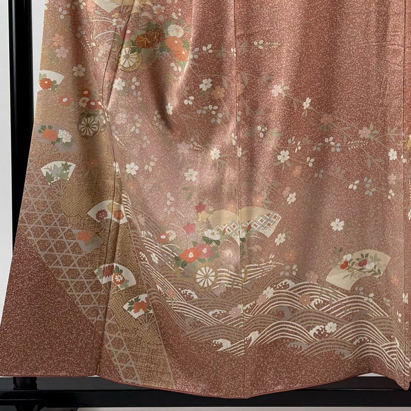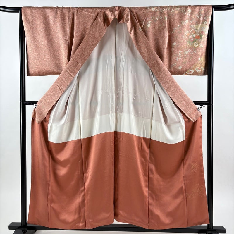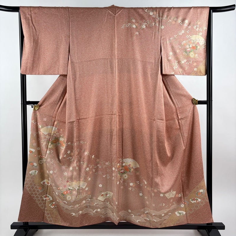 【訪問着】 赤系 ピンクベージュ 秀品 B 約150cm~約159cm 裄丈65cm (M)size 袖丈48cm 7990-9980 二万以下