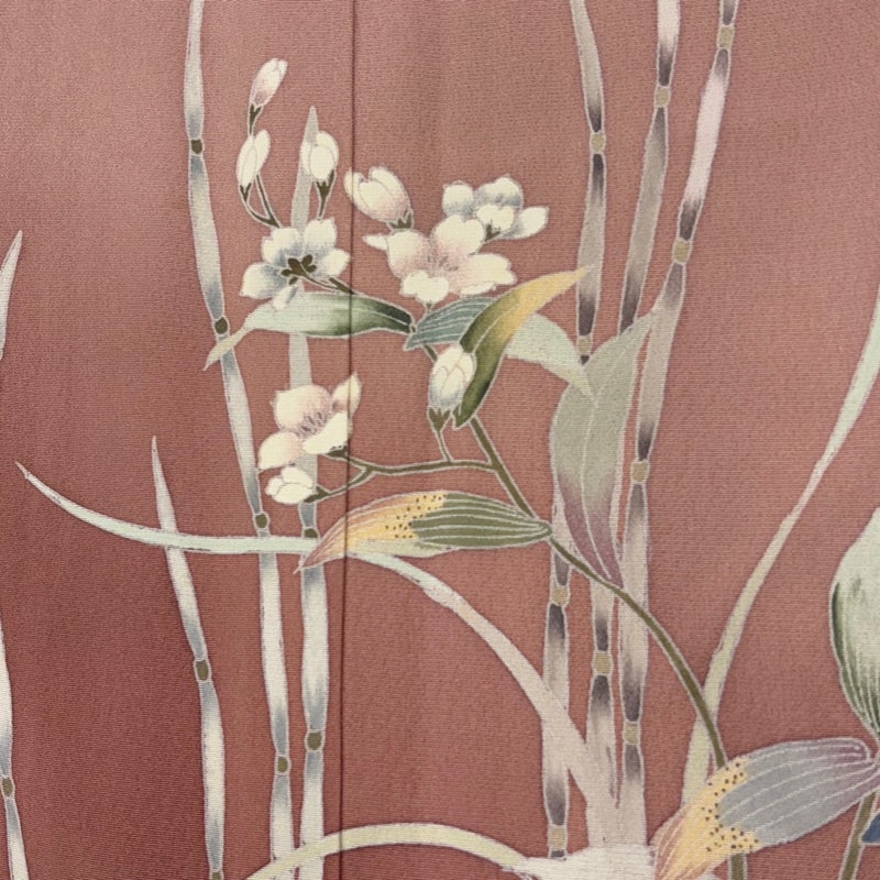 【着物ランク】秀品 【素材】正絹 【身丈】約161cm 【裄丈】約68cm 【袖丈】約48cm 【袖幅】約35cm 【前幅】約26.5cm 【後幅】約30.5cm 【サイズ】L 【着物仕立て】袷 【着用時期】10~5月 【状態ランク】ランクB 【着物着用シーン】披露宴、パーティー、お見合い、式典、茶会