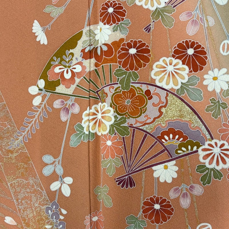 【訪問着】 赤系 薄オレンジ 秀品 C 約150cm~約159cm 裄丈63cm-64cm (M)size 袖丈50cm-60cm 7990-9980 二万以下