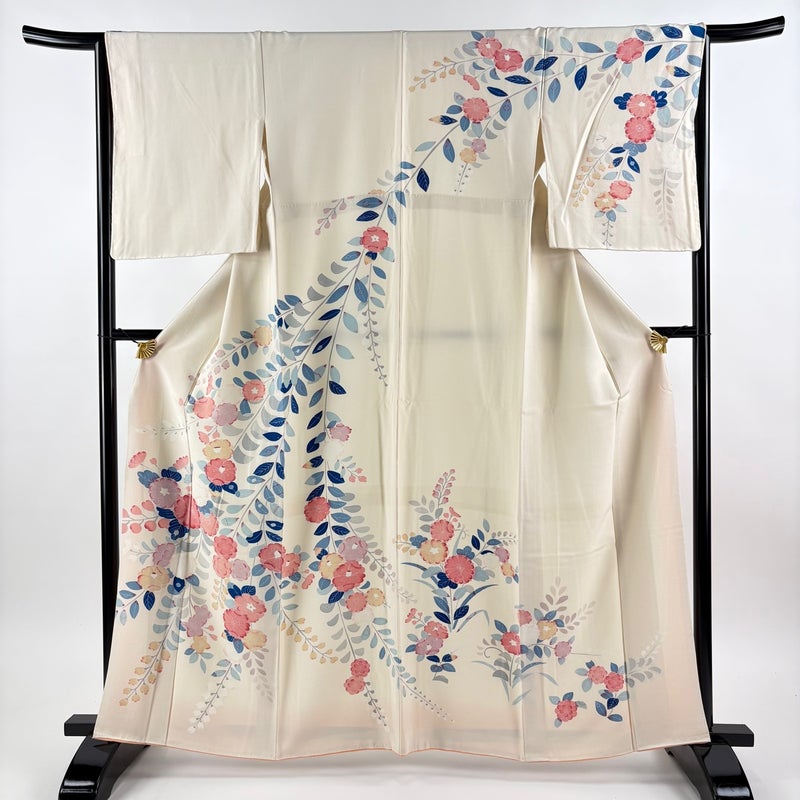 【訪問着】 白系 ベージュ 秀品 B 約160cm~約169cm 裄丈65cm (M)size 袖丈50cm-60cm 7990-9980 二万以下