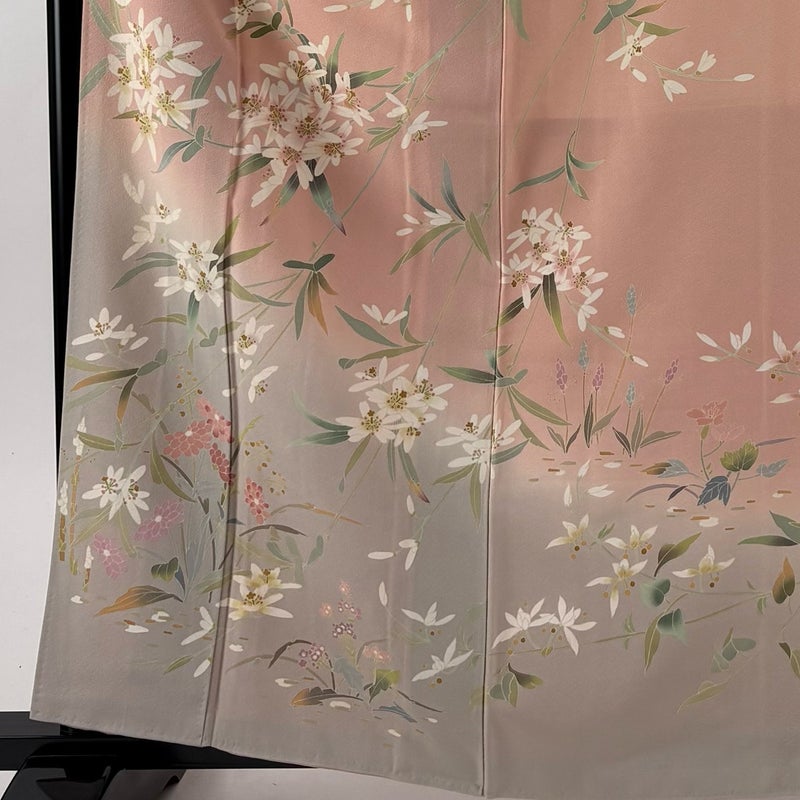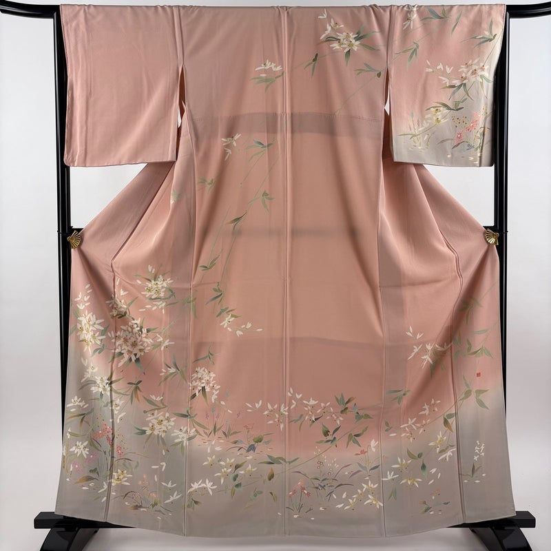 【訪問着】 赤系 ピンクベージュ 秀品 C 約160cm~約169cm 裄丈66cm (M)size 袖丈49cm 7990-9980 二万以下