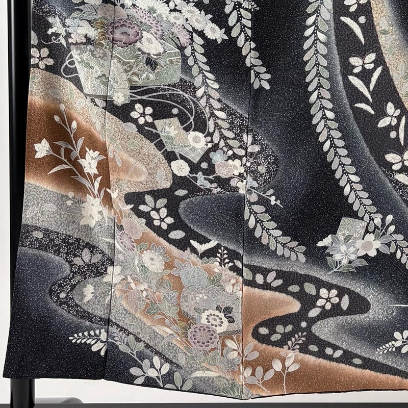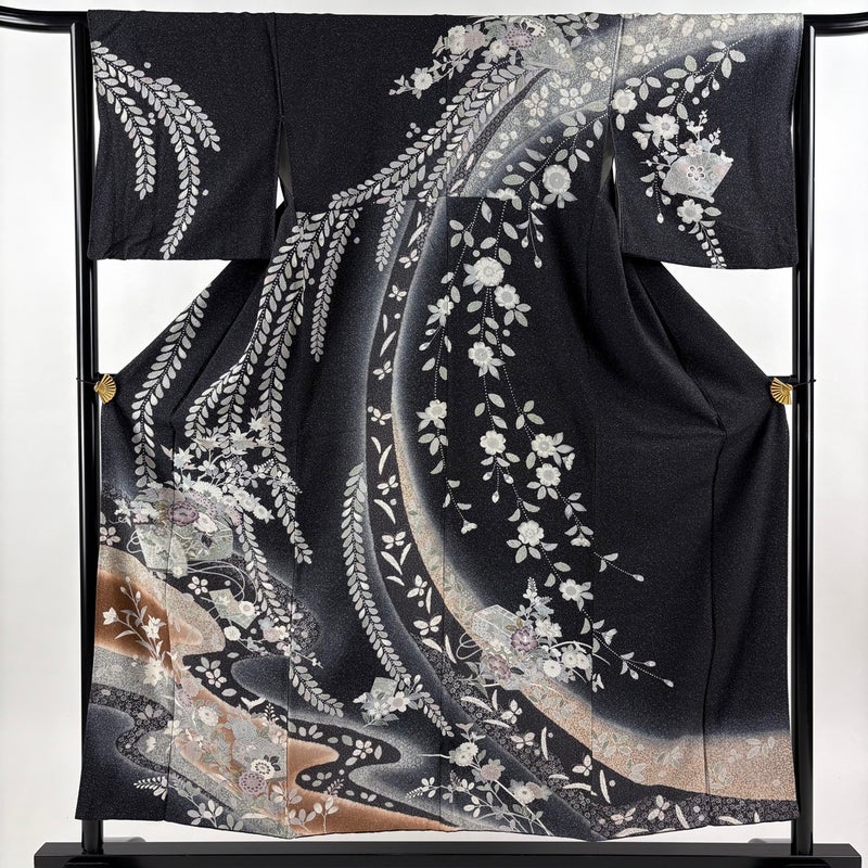 【訪問着】 黒系 墨色 秀品 B 約150cm~約159cm 裄丈63cm-64cm (S)size 袖丈47cm 7990-9980 二万以下