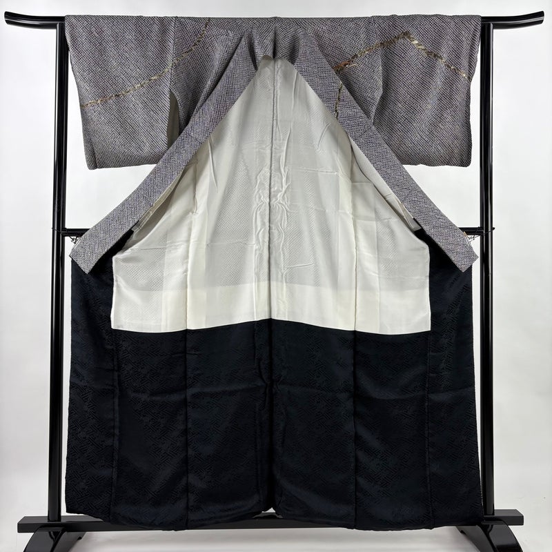 【訪問着】 黒系 黒 名品 A 約150cm~約159cm 裄丈63cm-64cm (M)size 袖丈47cm 9990-29990 美品 二万以下