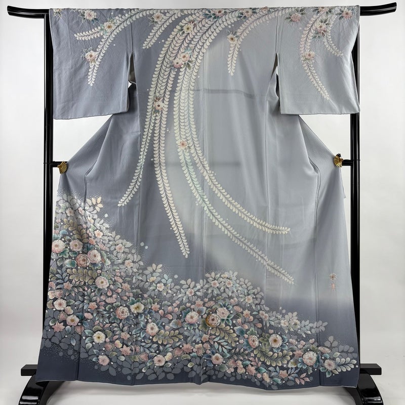 【訪問着】 灰色系 青灰色 名品 B 約160cm~約169cm 裄丈65cm (M)size 袖丈49cm 9990-29990 二万以下