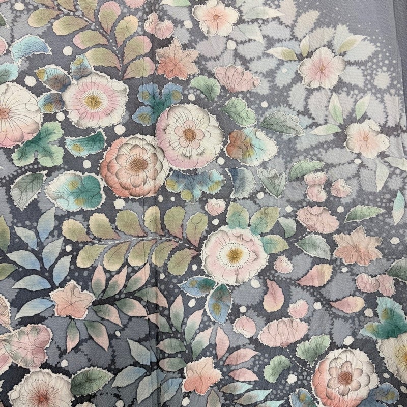 【着物ランク】名品 【素材】正絹 【身丈】約163.5cm 【裄丈】約65cm 【袖丈】約49cm 【袖幅】約34.5cm 【前幅】約25cm 【後幅】約30cm 【サイズ】M 【着物仕立て】袷 【着用時期】10~5月 【状態ランク】ランクB 【着物着用シーン】披露宴、パーティー、お見合い、式典、茶会
