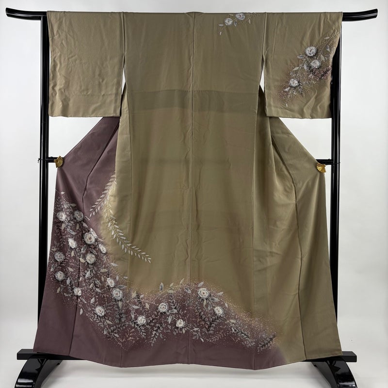 【着物ランク】名品 【素材】正絹 【身丈】約160cm 【裄丈】約66cm 【袖丈】約48cm 【袖幅】約34cm 【前幅】約24cm 【後幅】約30.5cm 【サイズ】M 【着物仕立て】袷 【着用時期】10~5月 【状態ランク】ランクB 【着物着用シーン】披露宴、パーティー、お見合い、式典、茶会