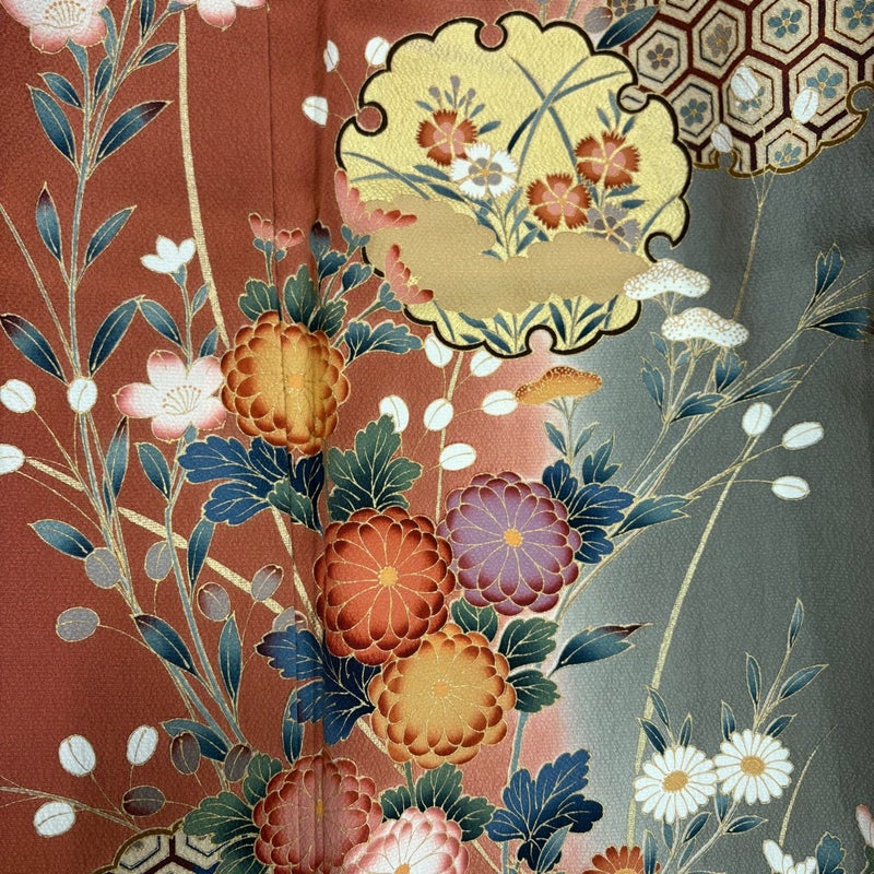 【訪問着】 赤系 赤茶 秀品 B 約150cm~約159cm 裄丈63cm-64cm (M)size 袖丈50cm-60cm 7990-9980 二万以下