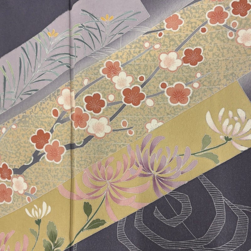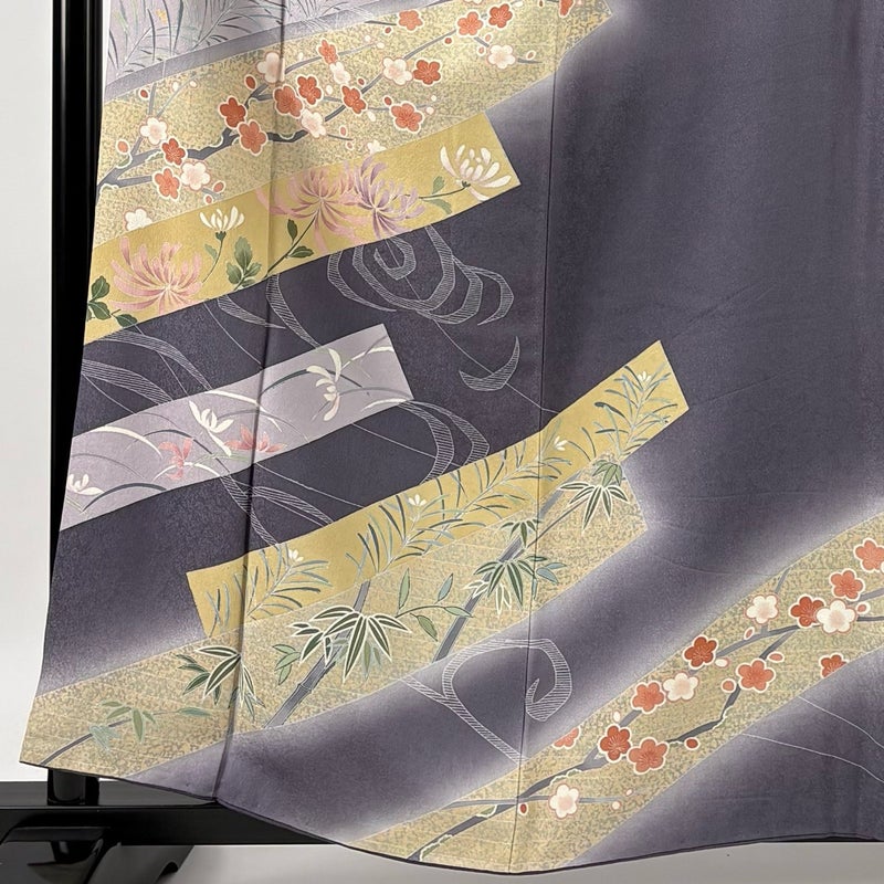【訪問着】 灰色系 灰紫 秀品 B 約150cm~約159cm 裄丈63cm-64cm (M)size 袖丈47cm 7990-9980 二万以下