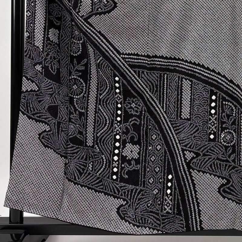 【訪問着】 黒系 黒 秀品 A 約150cm~約159cm 裄丈66cm (M)size 袖丈49cm 9990-29990 美品 二万以下