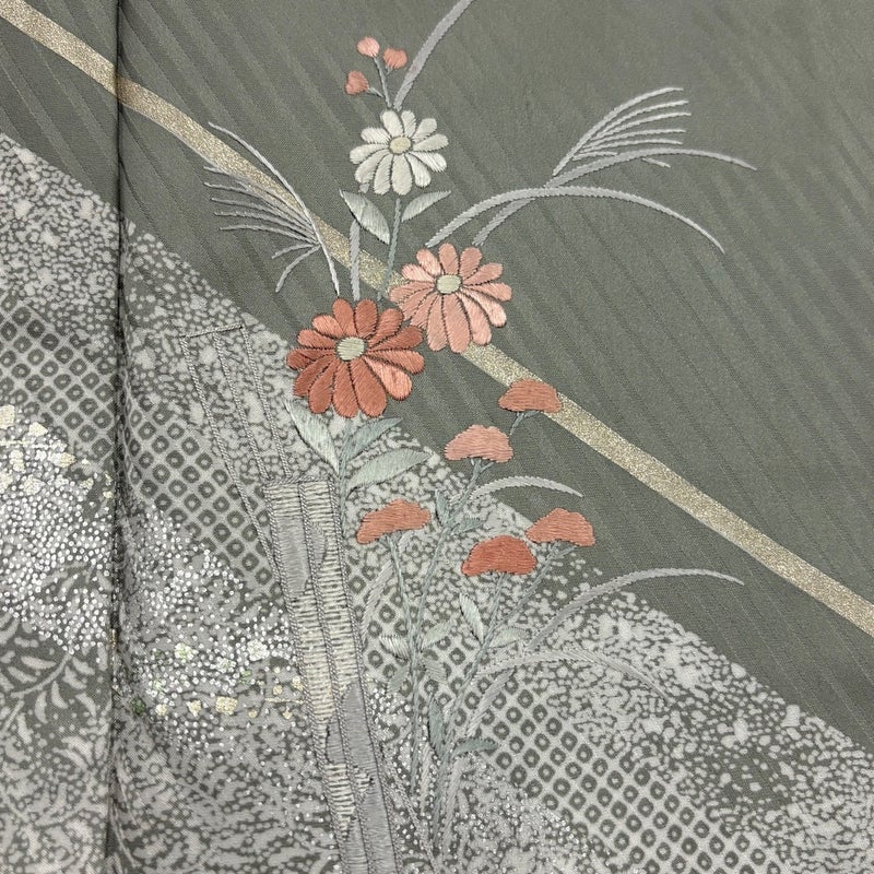 【訪問着】 灰色系 灰色 秀品 C 約150cm~約159cm 裄丈63cm-64cm (M)size 袖丈46cm以下 7990-9980 二万以下