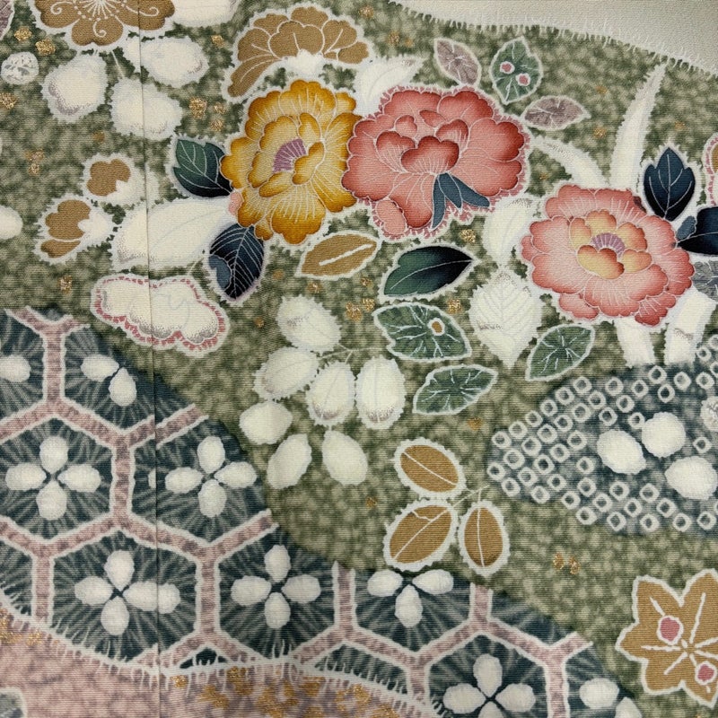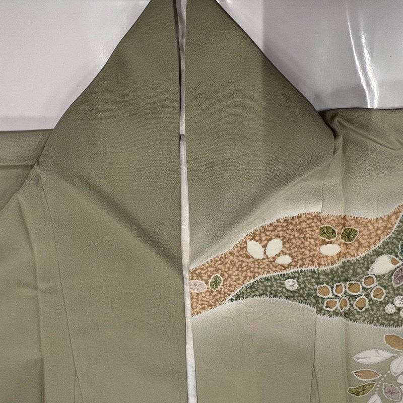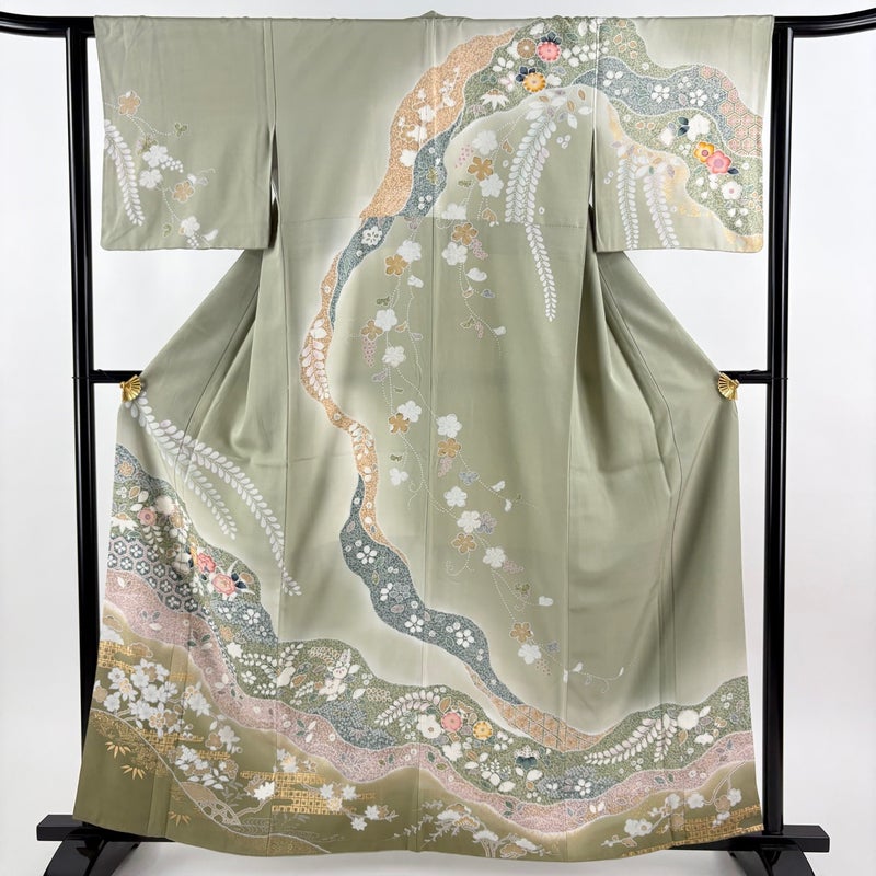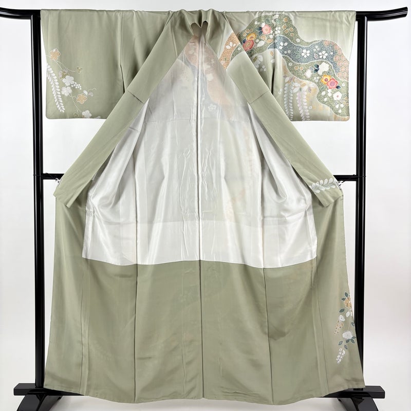 【訪問着】 灰色系 灰緑 秀品 C 約160cm~約169cm 裄丈63cm-64cm (S)size 袖丈46cm以下 7990-9980 二万以下